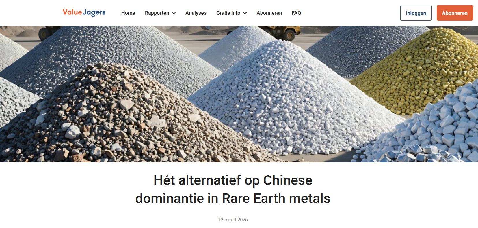 Met een nieuwe aandelentip: Hét alternatief op Chinese dominantie in Rare Earth metals