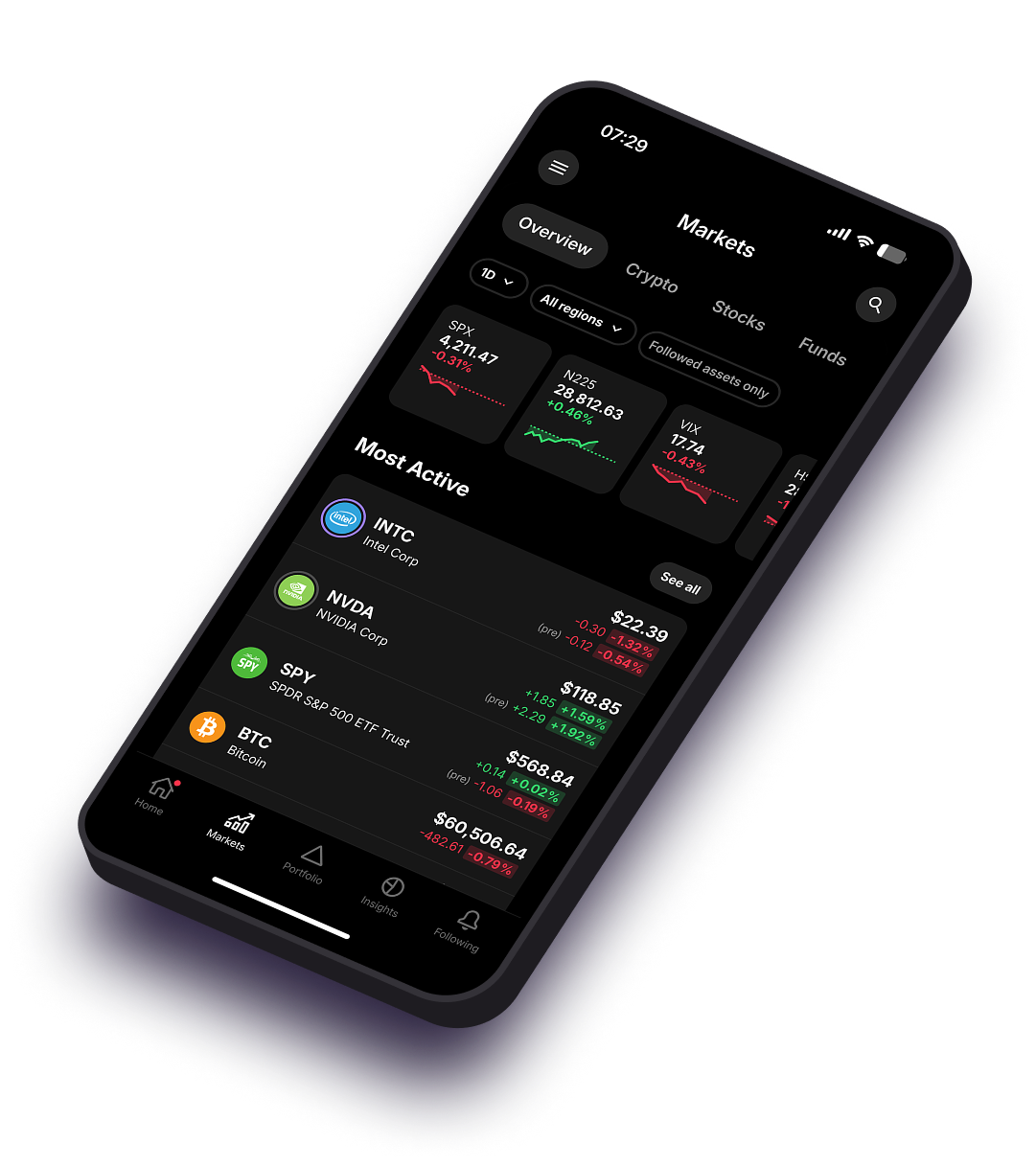 Delta by eToro is een gratis, alles-in-één beleggingstracker-app om uw beleggingen (aandelen, crypto, ETF’s, etc.) te beheren en te volgen. De app biedt realtime marktdata, overzichten van uw portefeuille en slimme meldingen.