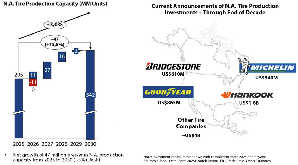 Diverse bandenproducenten investeren in het uitbreiden van hun productiecapaciteit in Noord-Amerika, gezien de verwachte hogere vraag: