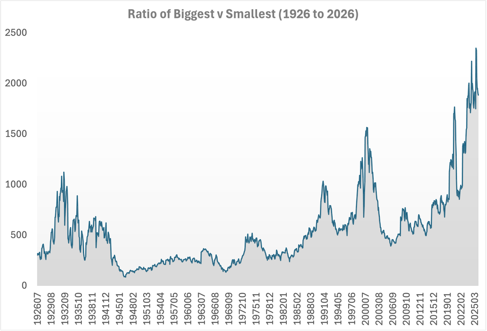 We hebben zojuist de meest extreme niveaus van de afgelopen honderd jaar gepasseerd in de verhouding tussen klein en groot.