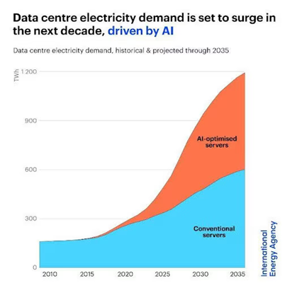 Tegen 2035 zouden AI-datacenters goed zijn voor 4,4% van het wereldwijde stroomverbruik — meer dan de volledige Britse economie vandaag.