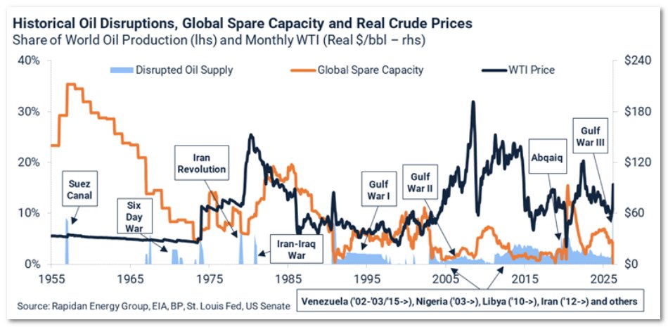 Tijdens de Suez-crisis was die reservecapaciteit zo’n 35% van het wereldwijde aanbod (en deze bevond zich veilig in de VS). Tijdens de Golfoorlog in 1990 was er nog 4% beschikbaar in Saudi-Arabië.