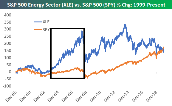 Tussen 2003 en 2008 presteerde de energiesector tot 300% béter dan de S&P 500.