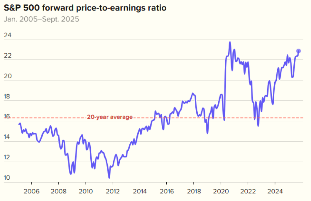 Ja, de forward P/E – de koers/winstverhouding op basis van toekomstige (12 maanden) winst – ligt hoog.