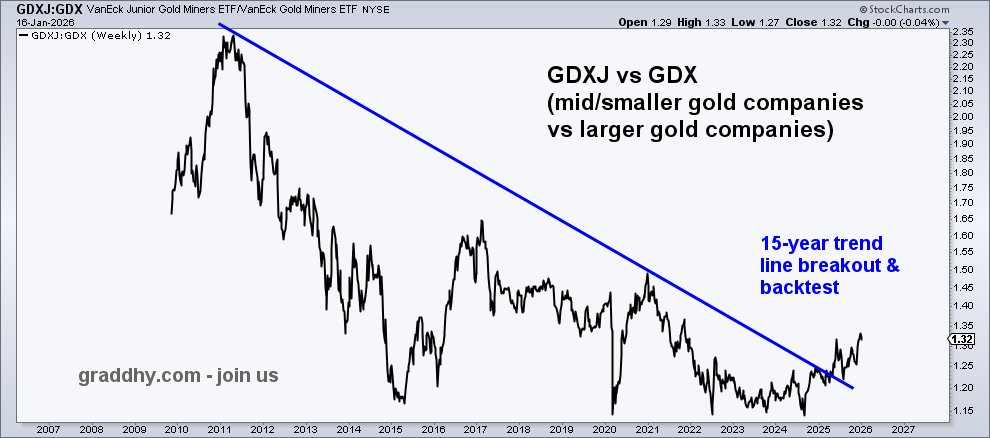 Dat reflecteert zich direct in de beurskoers van junior miners, die voor het eerst in 15 jaar hun negatieve trend ten opzichte van de producenten doorbroken hebben.