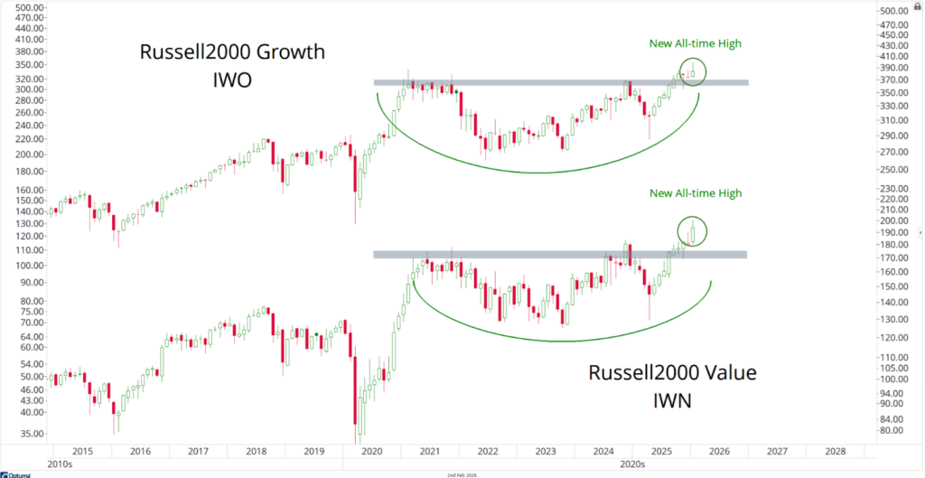 Zelfs binnen de VS is het beeld glashelder. Grote technologie bleef achter. Small caps, mid caps en zelfs micro caps liepen voorop.