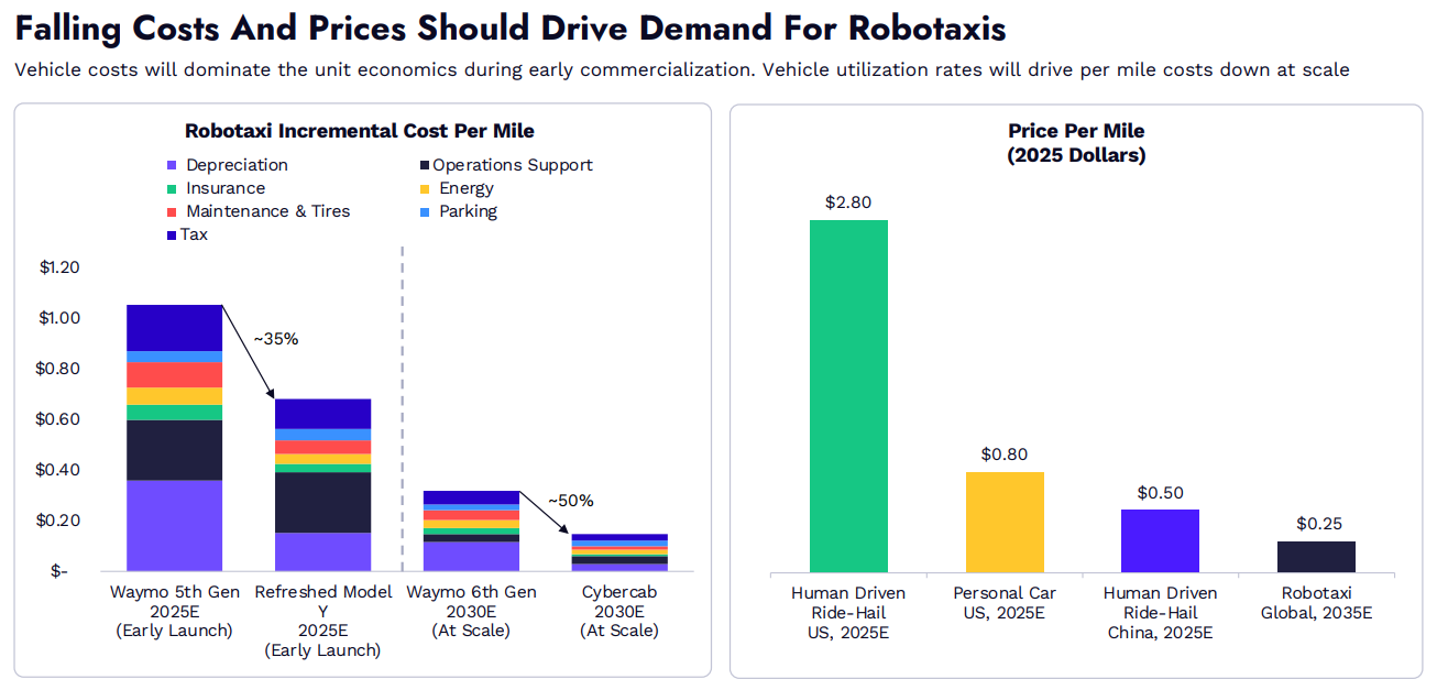 Dat maakt robotaxi’s niet alleen een luxe, maar de goedkoopste vorm van transport die de mensheid ooit heeft gekend.
