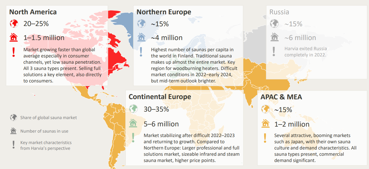 Belangrijk: de tijdelijke “miserie” in Rusland — historisch een grote saunamarkt — is verteerd. De activiteiten daar werden stopgezet, de omzetdaling uit 2022–2023 is achter de rug en de groei is in 2024–2025 opnieuw op kruissnelheid.