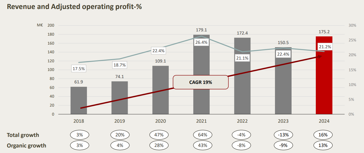 Sinds de IPO groeit de omzet gemiddeld hoog dubbelcijferig, waarbij organische groei rond 10% netjes wordt aangevuld met slimme overnames:
