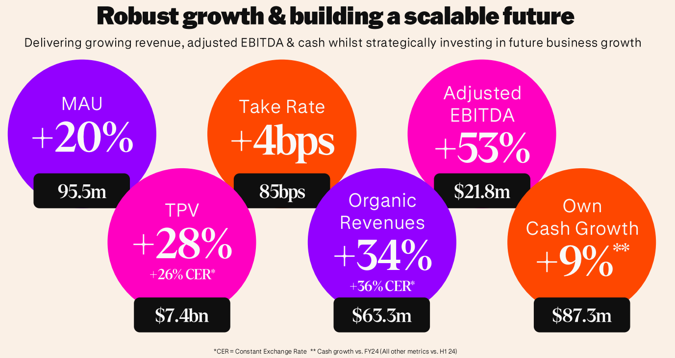Het totale verwerkte betaalvolume steeg met 28 procent naar 7,4 miljard dollar en het aantal actieve maandelijkse gebruikers klom naar 95 miljoen.
