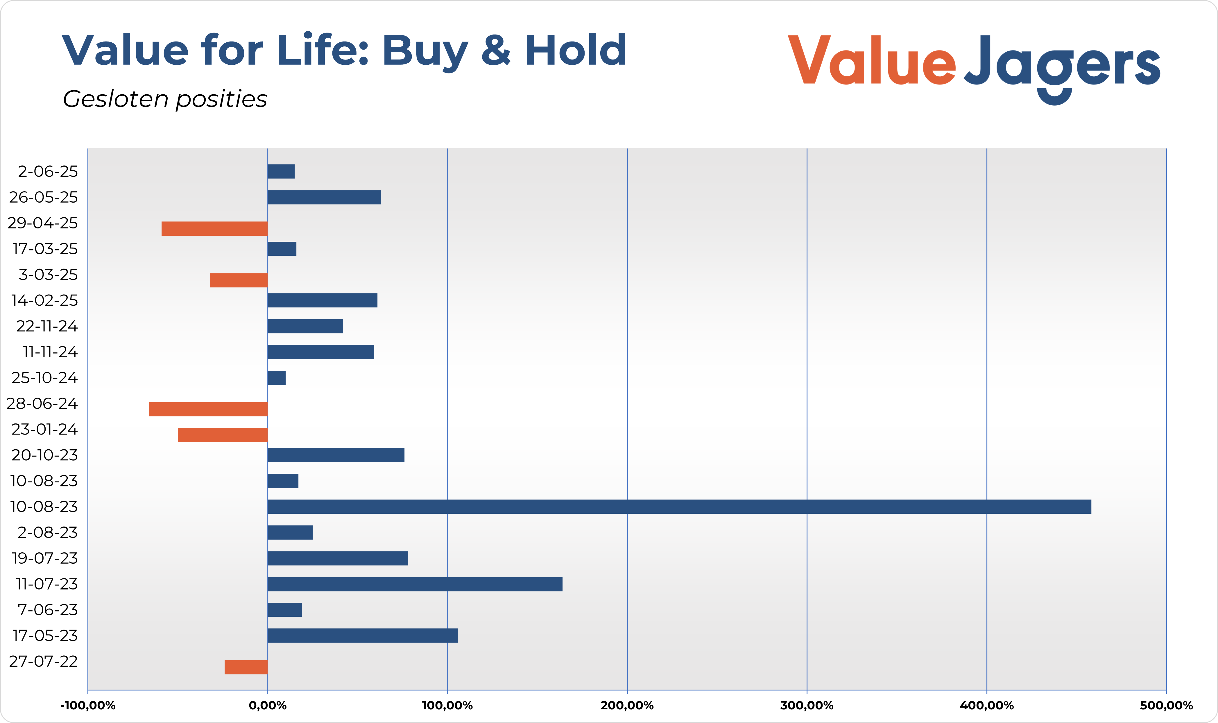 Value for Life: Buy & Hold is zelf een Buy & Hold product. Een eenmalige investering voor research die je levenslang begeleidt. Geen jaarlijkse facturen, geen verlengstress. Alleen een constante stroom van hoogwaardige analyses.